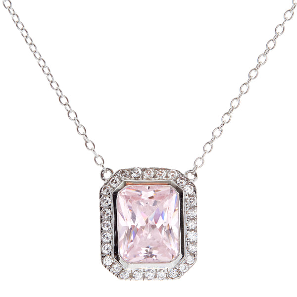 Candy Rhodium Emerald Cut CZ Silver Necklace