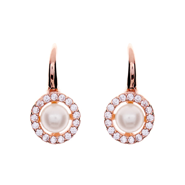 Lynne Baroque White Pearl & Rose Gold French Hook Earrings