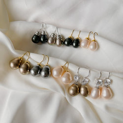 Large Classic: 12mm x 15mm baroque pearl in grey, pink & coffee. 25mm total drop
